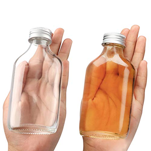 LEGE LIKEUR GLAZEN FLESSEN: Inbegrepen in onze set zijn 20 doorzichtige likeurflessen. Ze zijn plat in ontwerp en in stijl van een whiskyfles. Elke fles is 13 x 6,4 x 3cm en kan tot op 100ml vloeistof houden. Elke fles komt met een zilveren schroefdop. Deze doppen hebben geen verzegeling, maar kunnen wel gebruikt worden om de vloeistof binnen te houden. De set komt ook met een 5,4cm plastic trechter, wat het vullen van flessen makkelijk maakt.