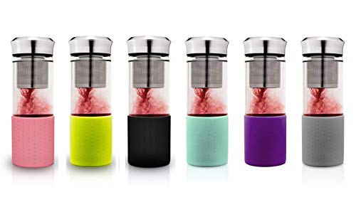 Specification: Creano Theemaker “Teamaker” – Theeflesje om te gaan van glas met zeef voor losse thee incl. neopreen zakje | 400ml (groen)