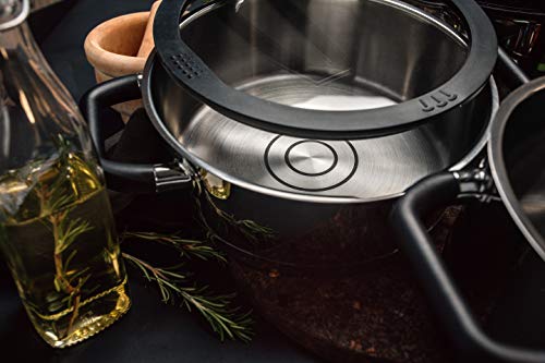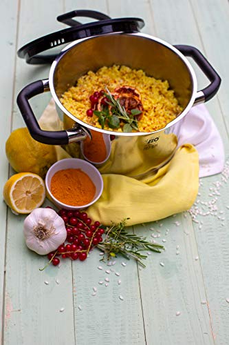 Functioneel: door de interne schaal en de bodem met hoge dichtheid voor elk fornuis geschikt, ergonomische, warmte-isolerende handgrepen en de deksel met zijn gepatenteerde standfunctie is deze pan bijzonder geraffineerd en functioneel.