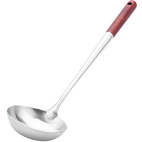 [MAATINFORMATIE] 17 inch lengte wokschop & pollepel, Handgesmeed uit een enkel stuk zware stalen behuizing met bloem Peer hout handvat om te isoleren van warmte, Anti-hete hand.