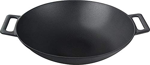 Specification: Gietijzeren Ondiepe Concave Wok, Zwart, 30,5 cm, Brede Handvatten – van KICHLY