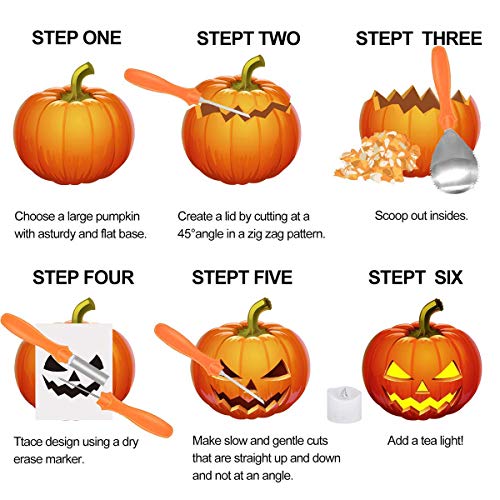 ???? Plezier voor het hele gezin: Halloween zou niet Halloween zijn zonder pompoen te snijden. Het uitsnijden van pompoenen voor Halloween is leuk en entertainment voor jong en oud. Knip je eigen stuk met je kinderen, familie of vrienden om een unieke kunst te creëren.