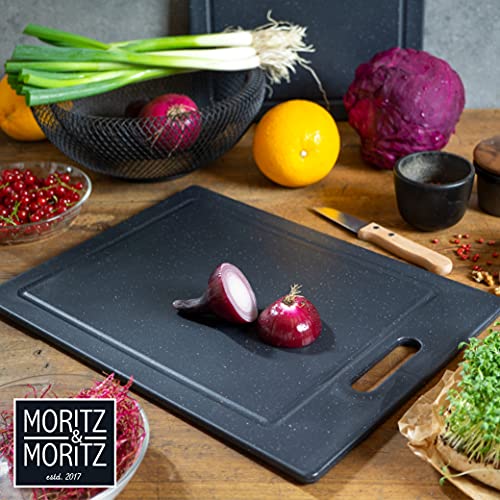 Moritz & Moritz 2 x snijplanken kunststof, 36 x 27,5 cm, snijplanken, BPA-vrij, keukenplanken in graniet-look, snijplank met antislipvoeten, insteekopening, snijplank met sapgoot