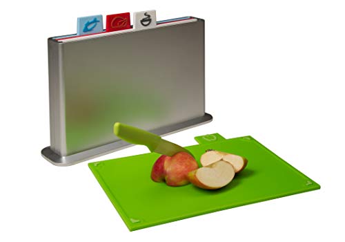 Specification: Styleshop777 Snijplankenset, 4-delig, met registertabs, hoogwaardige antislip snijplanken in ruimtebesparende standaard…